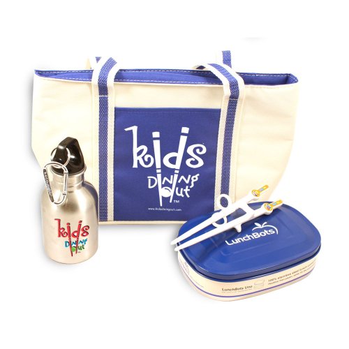 Blue Tote Bag, White Second Step Right HandedEdison Training Chopsticks, EcoUsable 10 oz Stainless Steel Water Bottle, Lunchbots Uno Stainless Steel Lunch Container